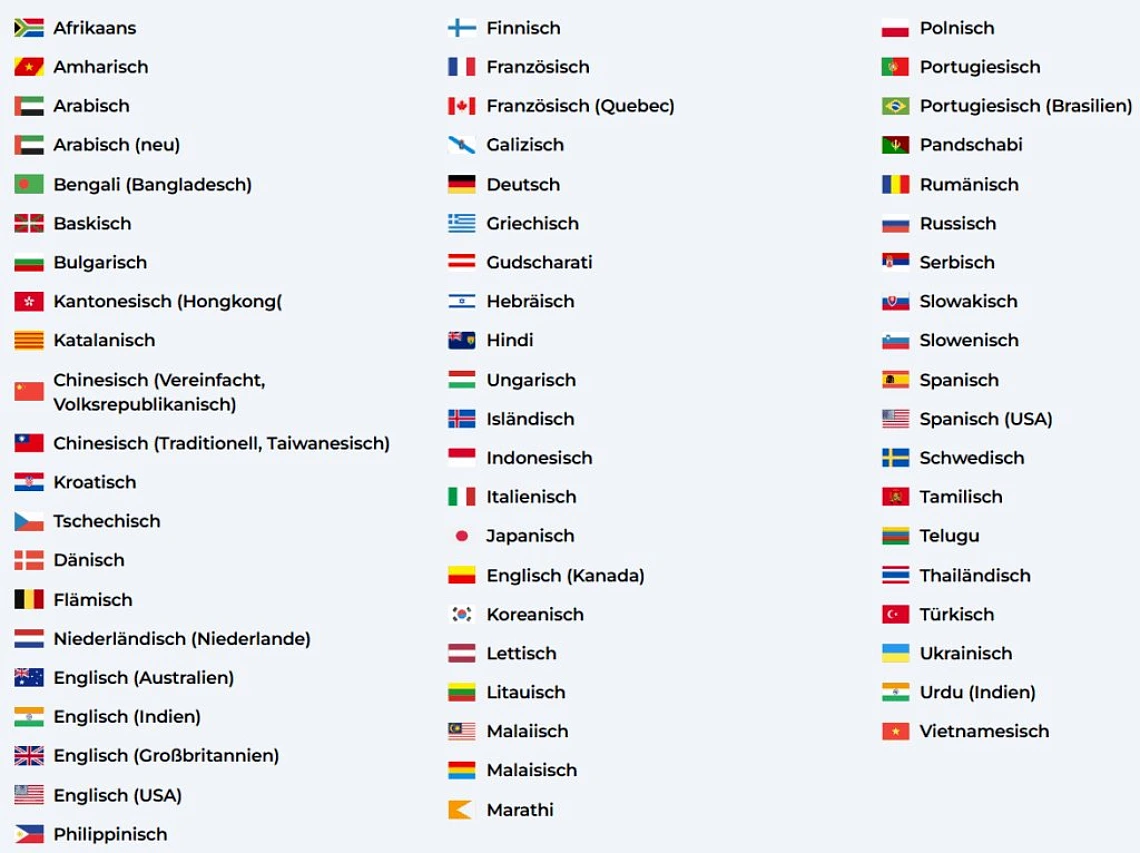 ➠ Über 68 unterstützte Sprachen